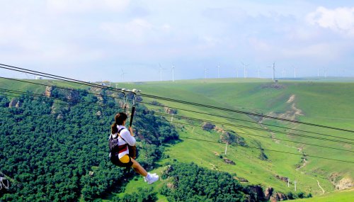 滑索,也称“速滑”“速降”、空中飞人”等.最早用于高山自救和军事突击行动.后演化为游乐项目,是一项具有挑战性、刺激性和娱乐性的现代化体育游乐项目。可跨越草地、湖泊、河流、峡谷,借助高差从高处以较高的速度向下滑行。使游客在有惊无险的快乐中感受刺激和满足。